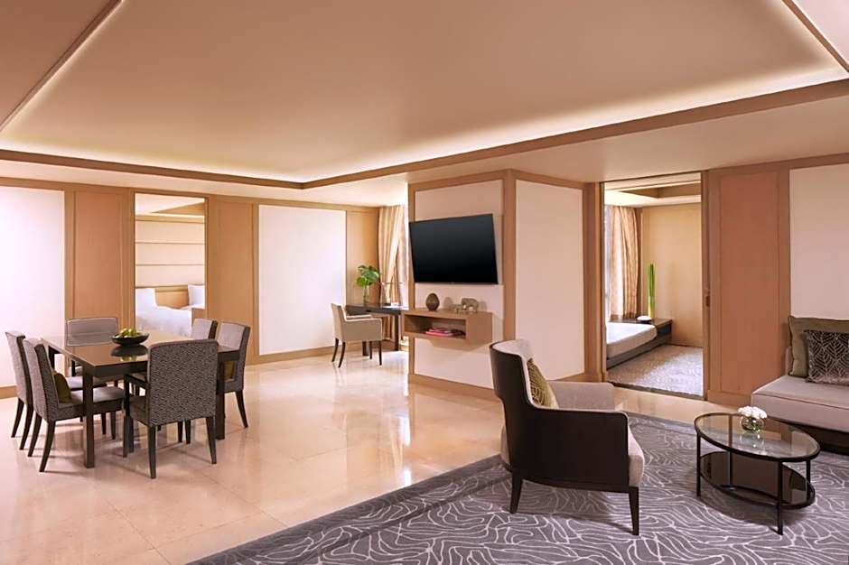 The Presidential Suite offers turn-down treats, complimentary mini-bar, a television in the bathroom, pillow menu, toiletries bag or cosmetics pouch and drinks and canapés two hours every evening. Guests can also enjoy full Club Lounge access and benefits.